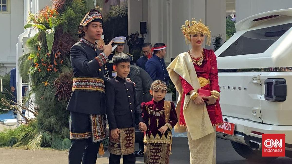 Gibran tiba di Istana Merdeka bersama sang istri, Selvi Ananda dan kedua anak mereka, Jan Ethes Srinarendra dan La Lembah Manah.