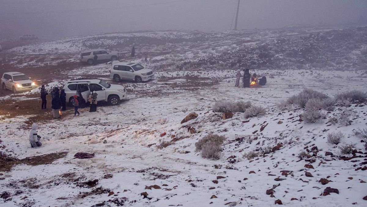 Mengutip dari Saudi Gazette, NCM sebelumnya mengabarkan hujan salju terjadi di Sebanyaknya bagian negara Saudi itu seperti di dataran tinggi yaitu Tabuk dan Hail.
